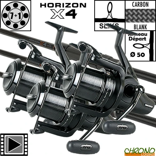 Equipée d’anneaux SLIKS noirs, dont celui de départ en 50mm et 16mm en tête qui réduisent très fortement les risques de nœuds au lancer, avec une finition très sobre, la Horizon x4 vous emmènera dans une nouvelle dimension.